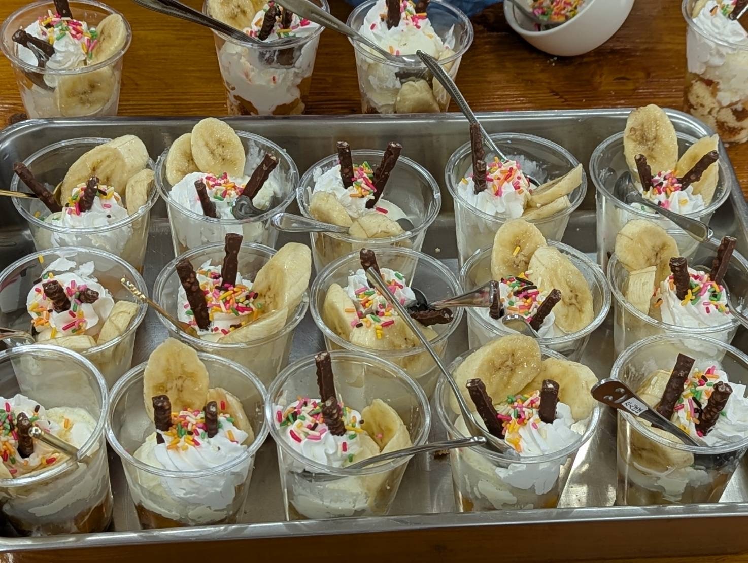 10月はおやつ作りもしました。数名の方に手伝って頂き一緒にパフェを作りました。役割分担し飾り付け迄して下さりとても美味しそうなパフェが出来上がっていました。