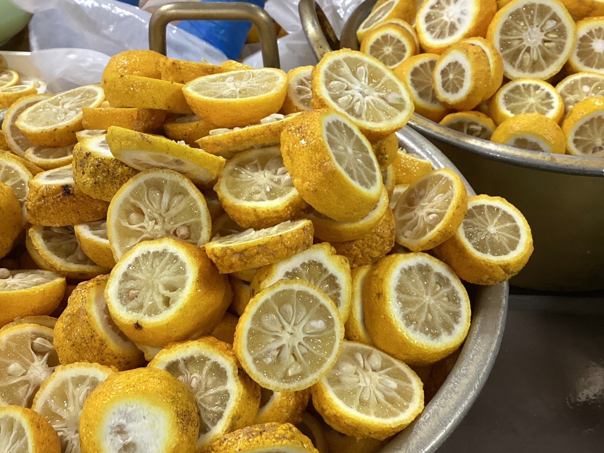 包丁で切った瞬間、デイルームだけでなく館内中が柚子の香りに包まれ、あっという間に係長こだわりのとってもおいしいゆずシロップができました。
